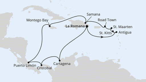 Die Dominikanische Republik steht für die schönsten Strände in der Karibik, für eine lebendige Kultur und für karibische Lebensfreude. Der Hafen von La Romana ist Ausgangspunkt für all das – und für eine Reise durch die Zeit und die hispanische Kultur. Wenn Ihr AIDA-Kreuzfahrtschiff im Hafen von La Romana anlegt, sollten Sie schon in den Startlöchern stehen. Machen Sie sich bereit für das Abenteuer Karibik – oder für einen erholsamen Tag an traumhaften Stränden. Bevor es weiter geht zu den schönsten Zielen in der Karibik, nach Montego Bay oder zum beschaulichen Ochos Rios auf Jamaika, nach Belize City oder Puerto Limon, führt Sie Ihre AIDA-Kreuzfahrt in das Herz der Dominikanischen Republik.