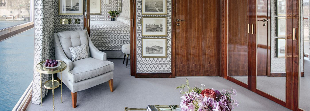 Die großzügig ausgestatteten Kabinen und Suiten mit Flussblick verfügen über handgefertigte Savoir®-Betten aus England, Bettwäsche aus 100 % ägyptischer Baumwolle mit hoher Fadenzahl und europäische Bettdecken sowie eine Auswahl an Kissenoptionen